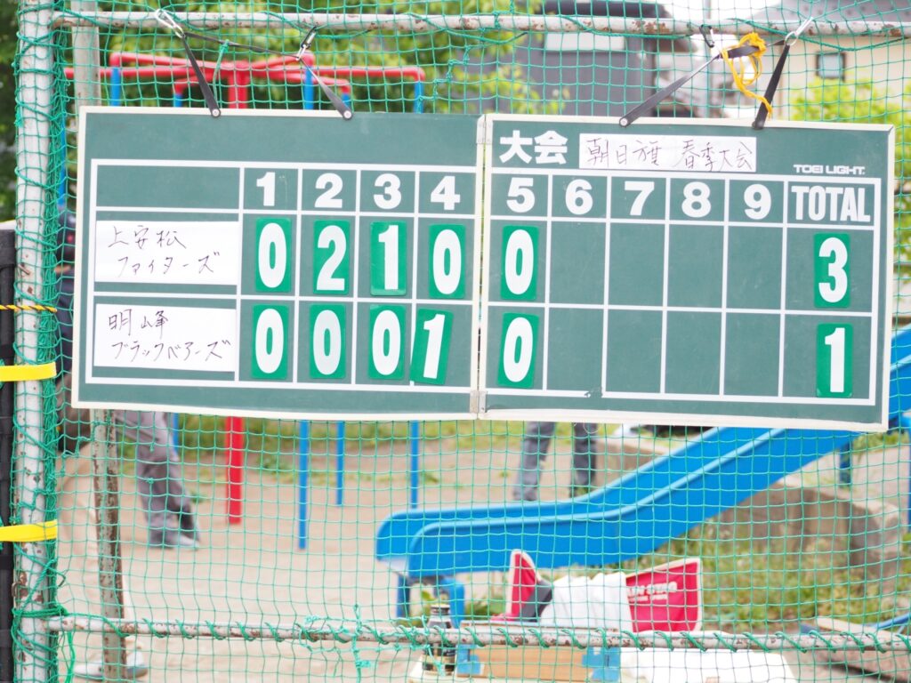 朝日旗春期大会予選 2024年5月13日 最終更新日時 : 2024年5月13日 blackbears 5/6 朝日旗春季大会予選 VS上安松ファイターズ。 1対3で残念ながら敗戦。 東部大会優勝後の試合だったので勢いそのままで勝ちたかった。 次頑張ります。